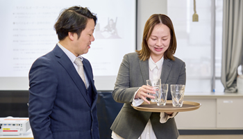同業・他業問わず、自社店舗で実際に行なっている“おもてなし”を学んでもらい、実際に現場でお客様と接することで、座学で学んだ”おもてなし”を経験として感じてもらう就業研修。